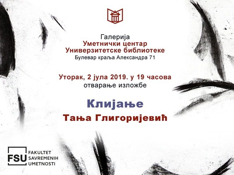 Studentkinja master studija slikarstva na FSU, Tanja Gligorijević, vas poziva da dođete na otvaranje njene izložbe „Klijanje”, u utorak, 2. jula, u 19 časova. Izložba će biti postavljena u Galeriji Umetničkog centra Univerzitetske biblioteke „Svetozar Marković” (Bulevar kralja Aleksandra 71).