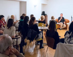 Radnja romana koja se odigrava u vreme Drugog svetskog rata bila je dovoljno zanimljiva i podsticajna za okupljenu publiku da se između čitanja odlomaka iz romana uključi u diskusiju sa autorom, pre svega o odnosu istorijskih činjenica i literarne fikcije, kao i savremenih aluzija.