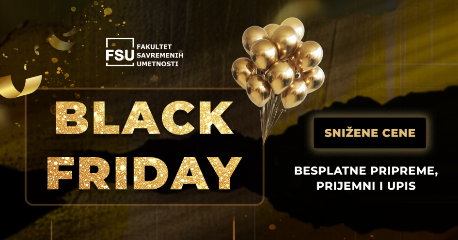 Fakultet savremenih umetnosti pripremio je posebnu ponudu za sve buduće studente povodom Black Friday i Cyber Monday akcije! Do 4. decembra, imate priliku da iskoristite jedinstvene pogodnosti koje će vam pomoći da zakoračite u svet umetnosti i kreativnih industrija: