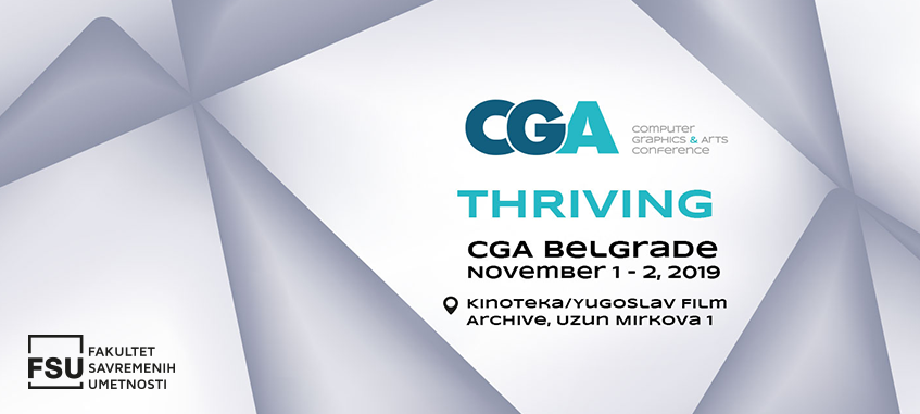 Pozivamo vas da budete učesnici 3. internacionalne konferencije kompjuterske grafike i umetnosti – „CGA Belgrade”. Ove godine konferencija će se održati 1. i 2. novembra pod sloganom „Bujanje/Thriving”, u zgradi Jugoslovenske kinoteke, u Uzun Mirkovoj 1.