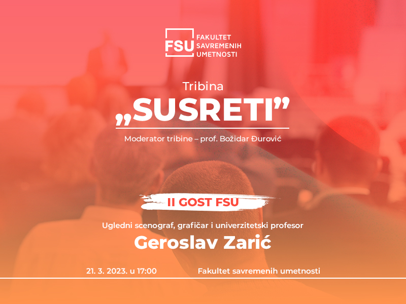 Pozivamo vas da posetite Fakultet savremenih umetnosti, u utorak, 21. marta, u 17h, i iskoristite priliku da upoznate cenjenog srpskog scenografa – profesora Geroslava Zarića.