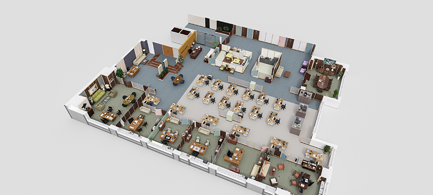 Središte „Sterling-Kupera”, smešteno u modernističkom oblakoderu na Menhetnu, organizovano je u dve zone. Obodnu zonu čine kancelarije srednjih i viših pozicija, dok samo jezgro čini otvoreni prostor u kome se nalaze stolovi sekretarica.
