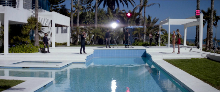 Svetlo je slabo i dolazi iz bočnih prostorija, tek toliko da hodnik učini dovoljno (ne)vidljivim. Iz iste pozicije, ali okrenute za 90 stepeni, vidimo i Džesi kako, kao silueta, okleva da uđe u vilu. Prostor u koji stupa je još mračniji i sve što od nje ostaje u trenutku zatvaranja vrata su atomizovane refleksije zlatne bluze. U vili, Džesino kretanje kroz ambijente zagasitih tonova i mesinganog stilskog nameštaja je tako kadrirano da se spoljašnjost ili samo nazire ili služi kao apstraktni izvor difuznog svetla. Ono što vilu čini sumnjivom, čak pretećom, jeste njena protivrečnost: u najvećem delu prostor je u strukturnom smislu krajnje jednostavan, sa zidovima koji služe kao oslonac ili pozadina stilskim komadima nameštaja i dekoracije, uz maksimalni učinak kontrasta između smirenosti prvog i nametljivosti drugog; istovremeno, tama koja obuzima ove prostore čini kontakt između pozadine i ispune nejasnom, sugerišući da tu ipak ima nečeg više, da u uglovima presvučenim senkom nešto vreba, da Džesi nije, čak i kada je Rubi odsutna, sama.