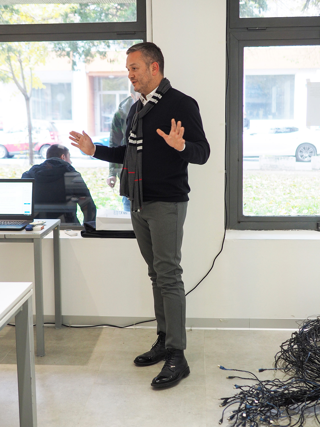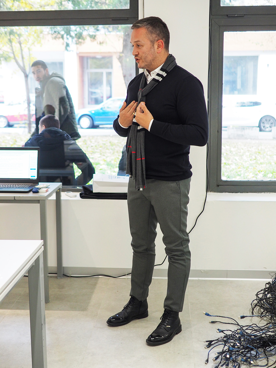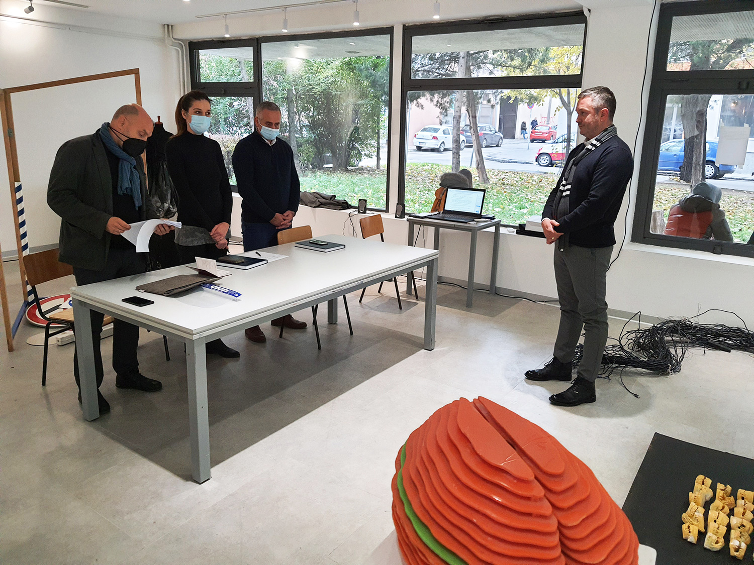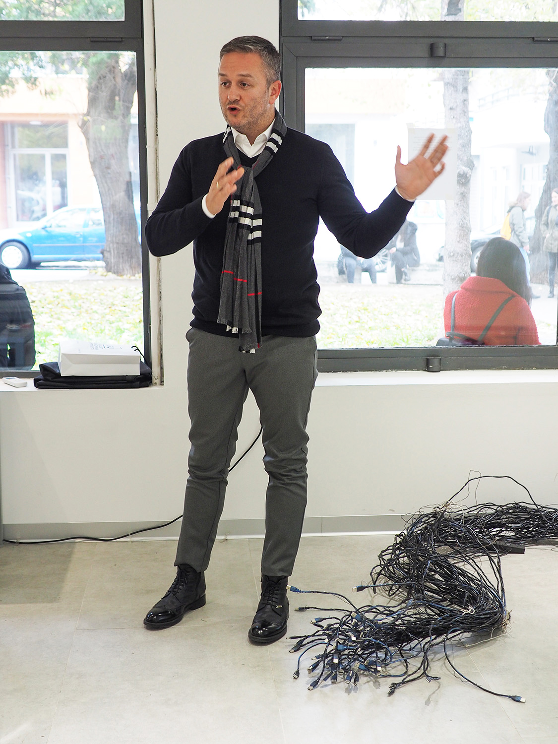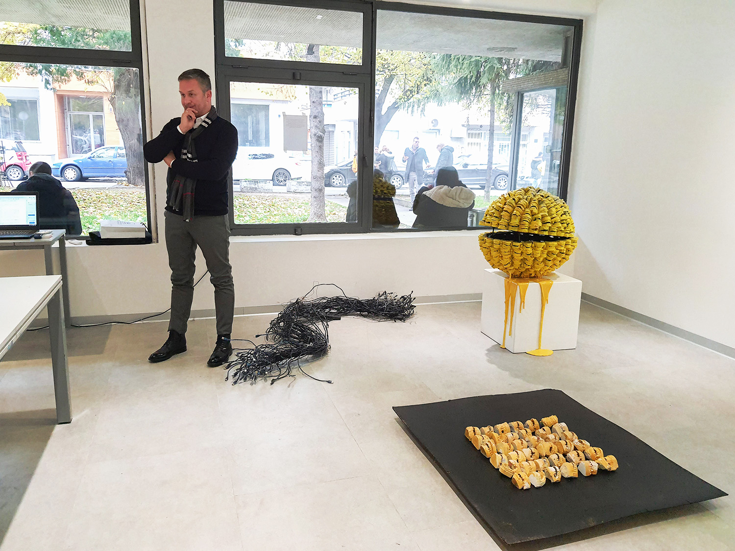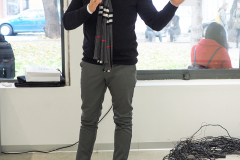 Umetnička instalacija pod nazivom „Kako nešto radi?”  bavi se uticajem medija u kreiranju sadržaja ili, kako kandidat pretpostavlja, dirigovane stvarnosti. Mediji nude senzacionalizam ili, kako bi Gi Debor rekao, društvo spektakla, kojim kreiraju sadržaje za kratkoročnu zabavu i zamagljuju objektivnu spoznaju. U radu se kritikuju kreatori društvene stvarnosti i označavaju kao ključni uzrok koji diriguje donošenje mnogih odluka. Zanimanje za kontekst zloupotrebe medijskih sloboda i uticaja na društvo može se sagledati i u radu „Perite vaša usta barem jednom dnevno”. Poput situacioniste, kandidat pokušava da odredi društveni aktivizam u ovom radu. Objekti od gipsanih otisaka ljudskih vilica kritikuju govor medija u sadržinskom, etičkom smislu i komentarišu uticaj snage reči u konstituisanju emotivnih stanja kod čoveka.