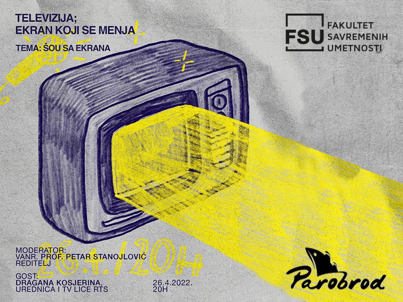 Petar Stanojlović, šef Departmana kreativnih komunikacija i vanredni profesor, održaće u utorak, 26. aprila, u 20 časova, u UK „Parobrod” drugo predavanje u ciklusu tribina „Televizija, ekran koji se menja”. Naziv drugog predavanja je „Šou sa ekrana”.
