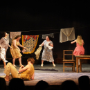 – introducing acrobatic elements of renaissance comedy and commedia dell’arte, singing segments of epic theater