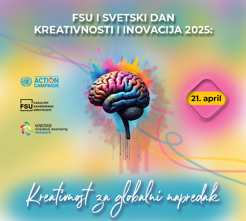 Fakultet savremenih umetnosti učestvuje u globalnog kampanji i obeležavanju Svetskog dana kreativnosti i inovacija 2025. Širom sveta se, 21. aprila, ukazuje na značaj kreativnosti i inovacija u svim aspektima društvenog razvoja. Ostvarivanje Agende 2030 i Ciljeva održivog razvoja zahteva kreativnost i inovaciju. Svetski dan kreativnosti i inovacija direktno doprinosi ostvarivanju Ciljeva održivog razvoja: SDG 4, SDG 5, SDG 8, SDG 9, SDG 10, SDG 11, SDG 12 i SDG 16.