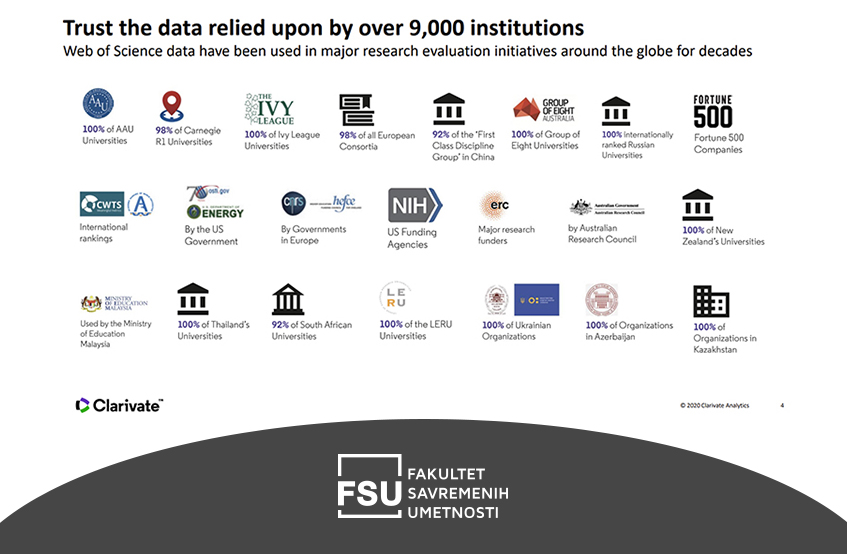 Zahvaljujući trogodišnjem ugovoru koji je LINK edu Alliance potpisala sa kompanijom Clarivate, u čijem je vlasništvu Web of Science, i FSU profesori, saradnici i studenti dobijaju podjednake šanse za razvoj i mogućnost napredovanja u nastavno-naučna zvanja kao i njihove kolege sa državnih univerziteta i instituta.