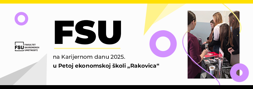 Fakultet savremenih umetnosti (FSU) učestvovao je 10. decembra 2025. godine na Karijernom danu u Petoj ekonomskoj školi „Rakovica“, gde je učenicima završnih razreda predstavio studijske programe iz oblasti dizajna, umetnosti, digitalnih medija, kreativnih komunikacija, biznisa i marketinga.
