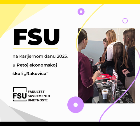 Fakultet savremenih umetnosti (FSU) učestvovao je 10. decembra 2025. godine na Karijernom danu u Petoj ekonomskoj školi „Rakovica“, gde je učenicima završnih razreda predstavio studijske programe iz oblasti dizajna, umetnosti, digitalnih medija, kreativnih komunikacija, biznisa i marketinga.