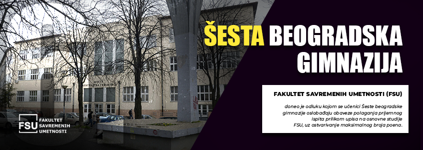 Fakultet savremenih umetnosti (FSU) doneo je odluku kojom se učenici Šesta beogradska gimnazija oslobađaju obaveze polaganja prijemnog ispita prilikom upisa na osnovne studije FSU, uz ostvarivanje maksimalnog broja poena.