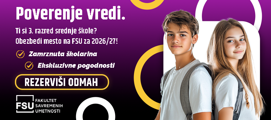 📌 Kampanja je namenjena učenicima 3. razreda srednjih škola koji žele da upišu FSU u školskoj 2026/27. godini i spremni su da svoje mesto rezervišu unapred.