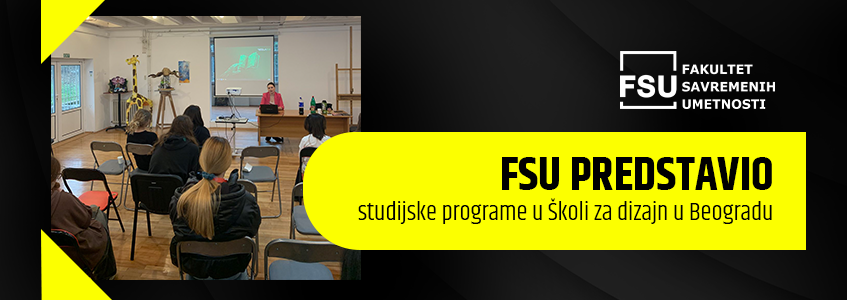 U utorak, 11. decembra, Fakultet savremenih umetnosti održao je prezentaciju u Školi za dizajn u Beogradu, gde su učenici završnih razreda imali priliku da saznaju više o mogućnostima koje FSU nudi mladim kreativcima. Tokom 30-minutne info-sesije govorilo se o studijskim programima, konkursima, umetničkim projektima i savremenim praksama u kreativnim industrijama.