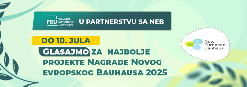 Fakultet savremenih umetnosti, kao jedina visokoškolska partnerska institucija iz Srbije Novog evropskog Bauhausa, poziva vas da se upoznate sa finalistima nagrade NEB i da glasate za najbolje projekte.