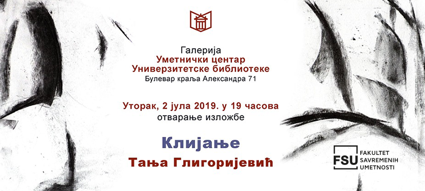 Studentkinja master studija slikarstva na FSU, Tanja Gligorijević, vas poziva da dođete na otvaranje njene izložbe „Klijanje”, u utorak, 2. jula, u 19 časova. Izložba će biti postavljena u Galeriji Umetničkog centra Univerzitetske biblioteke „Svetozar Marković” (Bulevar kralja Aleksandra 71).