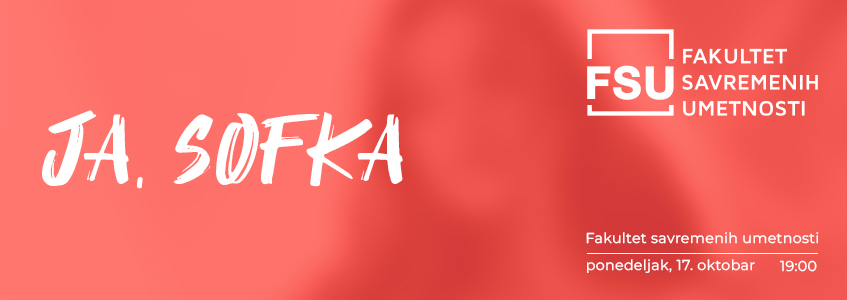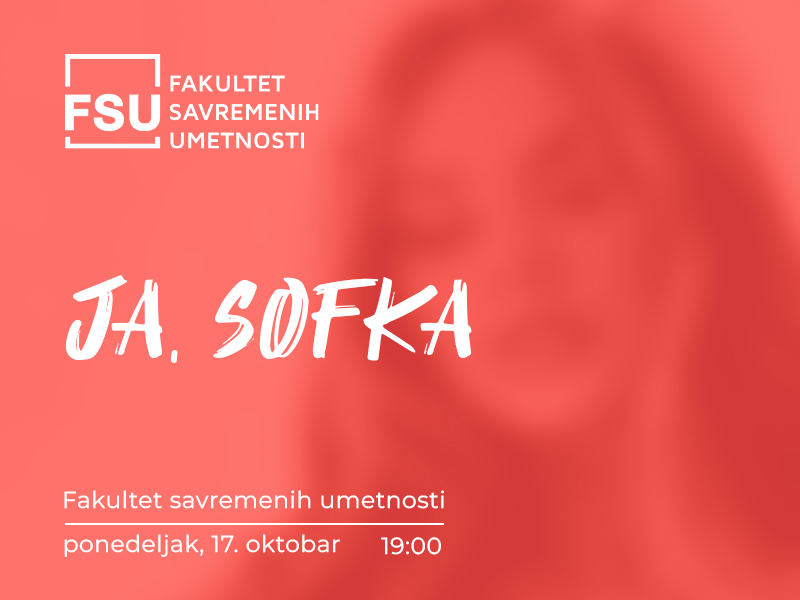 Iva Pavleković, studentkinja druge godine master studija na FSU, poziva vas da u ponedeljak, 17. oktobra, od 19 časova na Fakultetu savremenih umetnosti pogledate njenu završnu magistarsku predstavu „Ja, Sofka”.