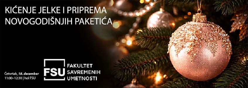 U četvrtak, 18. decembra, u holu Fakulteta savremenih umetnosti biće organizovano kićenje novogodišnje jelke, uz zajedničku pripremu paketića za decu iz Svratišta i Prihvatilišta za decu Beograda.