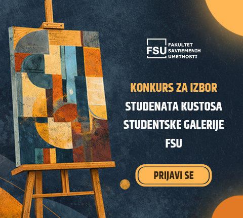 Fakultet savremenih umetnosti (FSU) raspisuje konkurs za izbor studenata kustosa Studentske galerije FSU za 2026. godinu. Konkurs je otvoren za sve studente FSU svih godina osnovnih i master studija sa aktivnim statusom u 2025/26 godini.