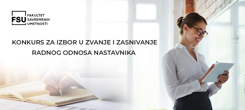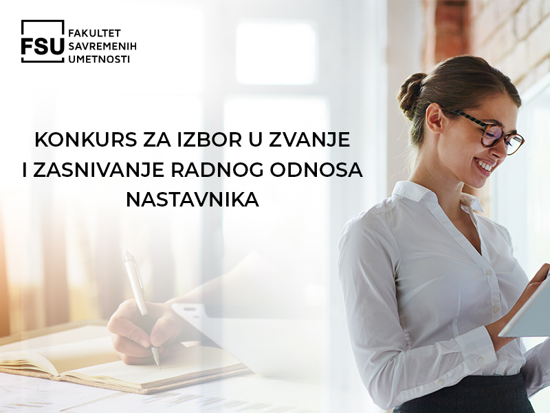 Uslovi: Svi kandidati moraju ispunjavati opšte i posebne uslove za izbor koji su propisani Zakonom o visokom obrazovanju („Sl. glasnik RS”, br. 88/2017, 73/2018, 27/2018 – dr. zakon, 67/2019 i 6/2020 – dr. zakoni), Statutom Univerziteta Privredna akademija u Novom Sadu, Fakulteta savremenih umetnosti u Beogradu (50/2019 od 27. 3. 2019. godine) i Pravilnikom o bližim uslovima za izbor u zvanje i zasnivanje radnog odnosa nastavnika i saradnika Univerziteta Privredna akademija u Novom Sadu, Fakulteta savremenih umetnosti (broj: 2/2018 i datum: 25. 2. 2018. godine).