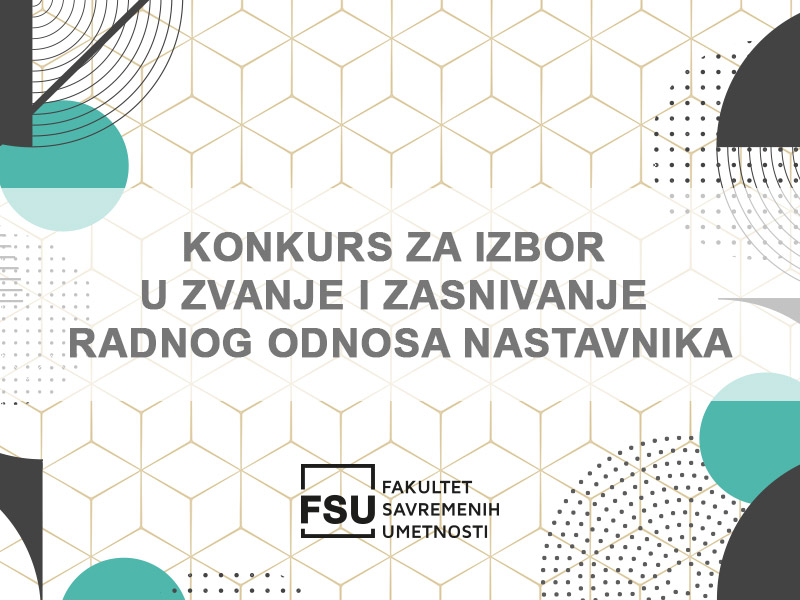 Na osnovu člana 30, stav 1, tačka 10 Statuta Univerziteta Privredna akademija u Novom Sadu, Fakulteta savremenih umetnosti u Beogradu (broj: 50/2019, od 27. 3. 2019. godine), dekan Fakulteta raspisuje konkurs za izbor u zvanje i zasnivanje radnog odnosa nastavnika: