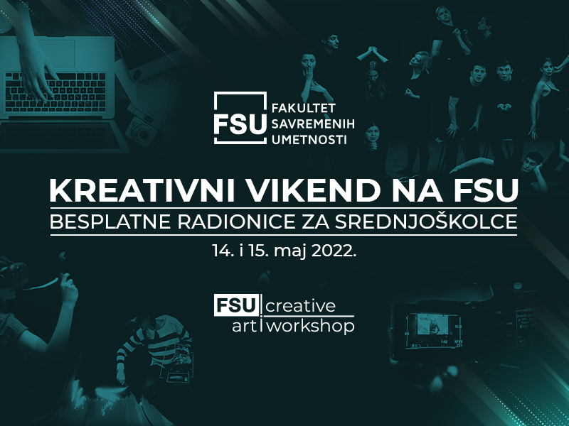Fakultet savremenih umetnosti i ove godine organizuje kreativne vikend radionice! Svi srednjoškolci, zaljubljenici u umetnost, koji žele da učestvuju na radionicama koje se održavaju 14. i 15. maja potrebno je da se što pre prijave i obezbede svoje mesto.