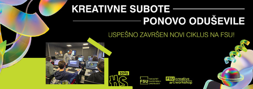 Na Fakultetu savremenih umetnosti uspešno je završen novi ciklus Kreativnih subota, namenjen srednjoškolcima, koji je realizovan 29. novembra i 13. decembra. Veliko interesovanje i aktivno učešće mladih pokazali su koliko su ovakvi programi važni za razvoj kreativnih potencijala i profesionalno usmeravanje.