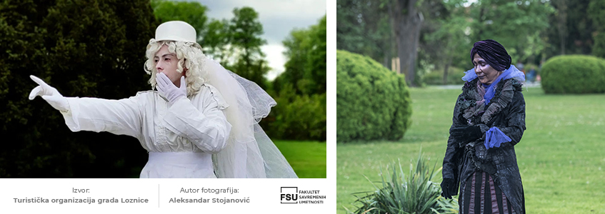 Na naslovnoj fotografiji Natalija Žugić je Mermerna statua (devojka u belom sa velom mlade), dok je Marina Bukvički Ljubičasta dama.