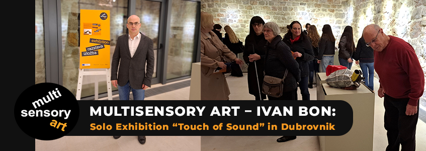 The solo exhibition Ivan Bon of sound sculptures titled “Touch of Sound” was held at the Lazareti Gallery in Dubrovnik from January 30 to February 12, 2026, within the framework of the project “Multisensory Art,” dedicated to blind and visually impaired persons and supported by Creative Europe.