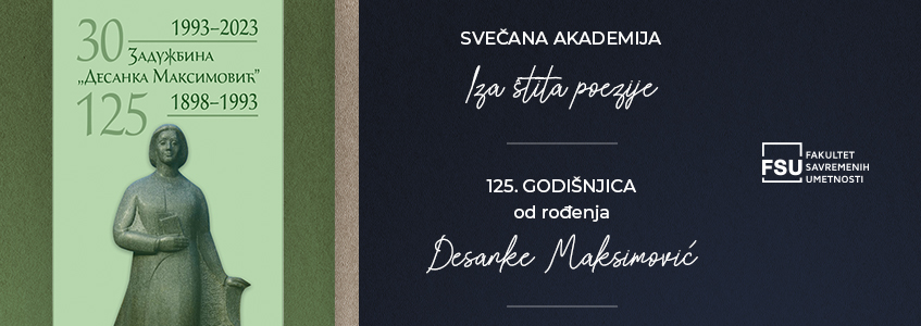 Zadužbina Desanke Maksimović je 15. maja na najvišem zvaničnom nivou u svečanoj sali Narodne biblioteke Srbije obeležila centralnom proslavom 125 godina od rođenja Desanke Maksimović. U prisustvu državnih, verskih i kulturnih zvanica, uvodnu besedu je izrekao akademik i pesnik Ljubomir Simović, a skupu su se obratili predstavnik Ministarstva kulture, upravnik Narodne biblioteke Srbije – Vladimir Pištalo – i upravnica Zadužbine Desanke Maksimović – Svetlana Šeatović. Umetnički program je vodila studentkinja treće godine glume FSU Željana Nedeljković, a scenario i režiju ovog programa potpisao je reditelj i profesor FSU Petar Stanojlović.