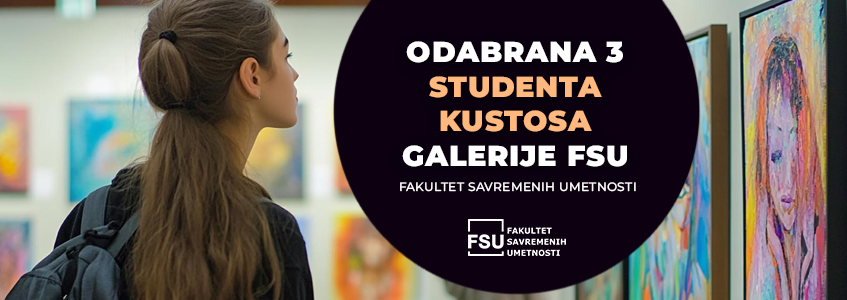 Fakultet savremenih umetnosti (FSU) raspisao je konkurs za izbor studenata kustosa Galerije FSU za 2026. godinu, namenjen studentima svih godina osnovnih i master studija sa aktivnim statusom u školskoj 2025/26 godini.