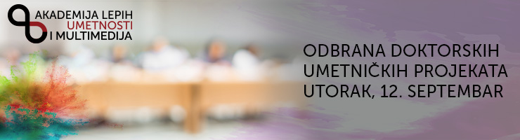 Za utorak, 12. septembar, na Fakultetu savremenih umetnosti, u Ulici Svetozara Miletića, zakazane su dve odbrane doktorskih umetničkih projekata.