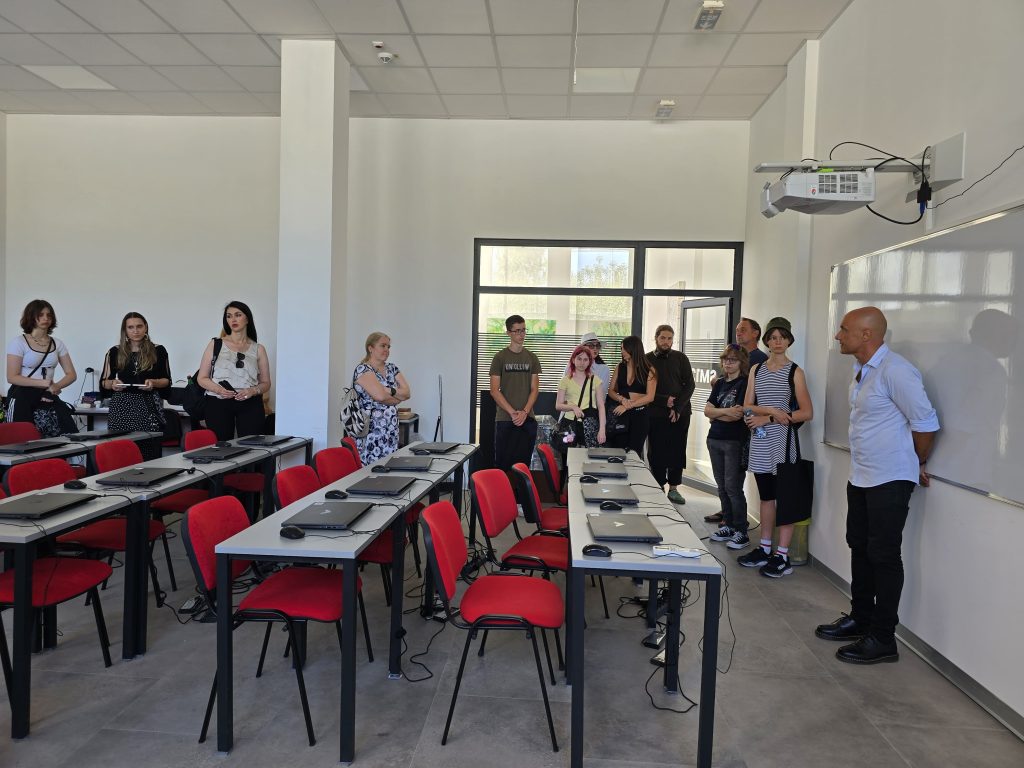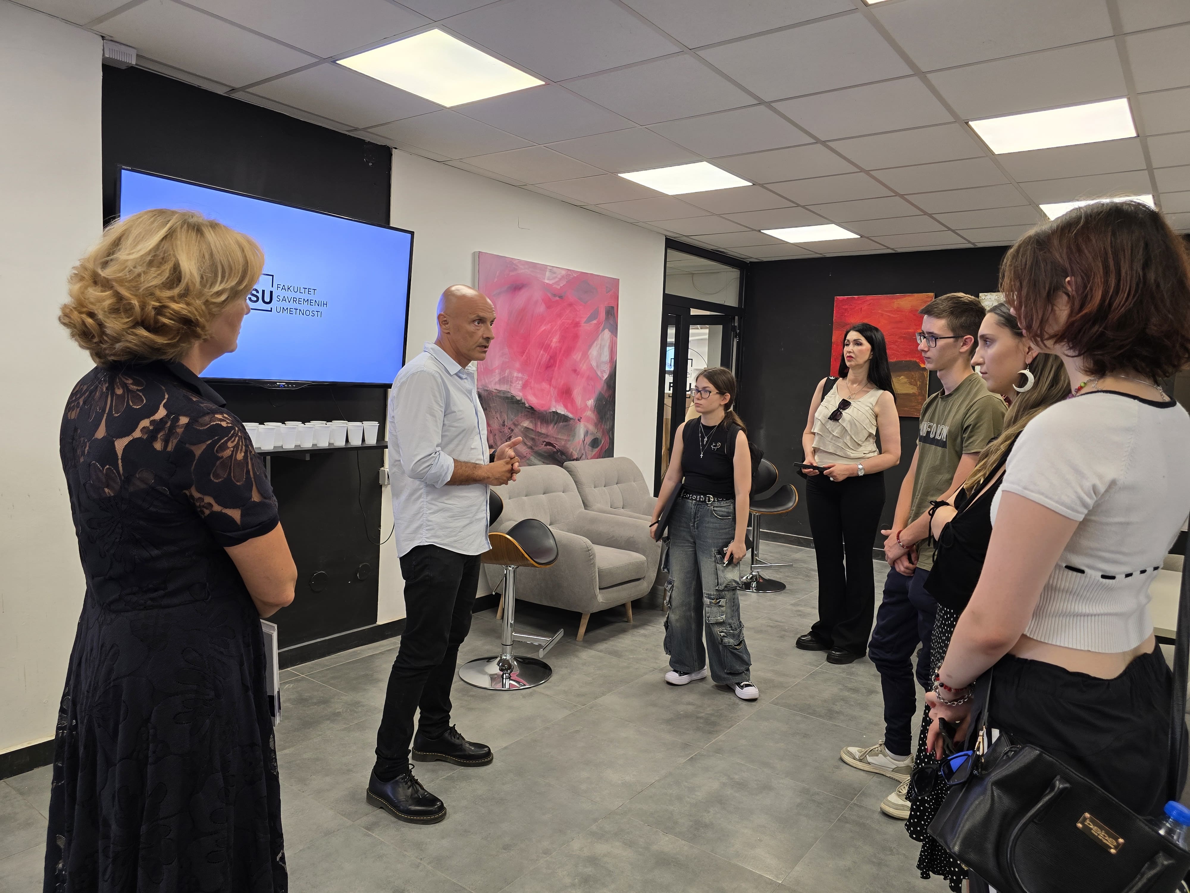 Dan je započeo registracijom učesnika i obilaskom fakultetskih kapaciteta – galerije, biblioteke, multimedijalnog studija i specijalizovanih učionica u SM aneksu.