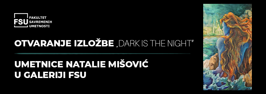 Umetnički prostor Fakulteta savremenih umetnosti ima čast da vas pozove na otvaranje izložbe slika „Dark is the Night” mlade umetnice Natalie Mišović, koja će biti postavljena od 15. do 28. maja 2025. godine u galerijskom prostoru FSU.