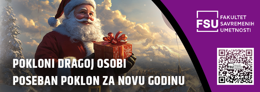FSU novogodišnji vaučer u vrednosti od 50 evra omogućava predupis na Fakultet savremenih umetnosti i pruža mladim talentima šansu da razviju svoje veštine u oblastima umetnosti, dizajna, glume, kreativnih komunikacija i marketinga.