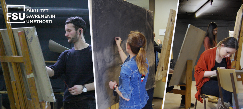 Kandidati za smer Likovne umetnosti – Slikarstvo polažu prijemni u ateljeu Fakulteta savremenih umetnosti. Na prijemni ispit je potrebno poneti: