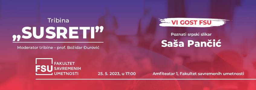 Pozivamo vas da posetite Fakultet savremenih umetnosti, u četvrtak, 25. maja, u 17 časova, i iskoristite priliku da upoznate čuvenog srpskog umetnika – Sašu Pančića.
