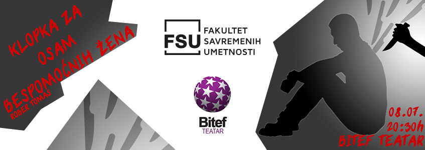 Studenti master studija glume sa Fakulteta savremenih umetnosti pozivaju vas da pogledate njihovu završnu predstavu „Klopka za osam bespomoćnih žena”, koja će se u petak, 8. jula, od 20:30, igrati u Bitef teatru. Ulaz na predstavu je besplatan.