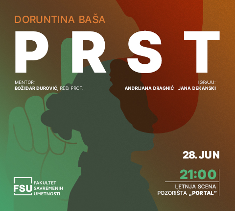 Vidimo se u sredu, 28. juna, od 21:00, na izvedbi predstave „Prst”. Ulaz na predstavu je besplatan.