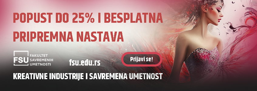 Ako sanjaš da svoju kreativnost pretvoriš u karijeru, sada je pravi trenutak da napraviš prvi korak. Fakultet savremenih umetnosti (FSU) poziva te da se prijaviš na studije i iskoristiš posebne pogodnosti u okviru radnog upisa – do 25% popusta na školarinu i besplatnu pripremnu nastavu za prijemni ispit!