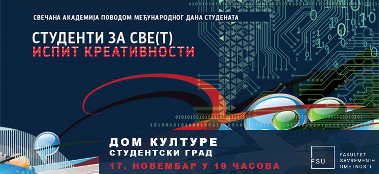 Studenti Fakulteta savremenih umetnosti učestvovali su u pripremi i organizaciji Svečane akademije povodom Međunarodnog dana studenata, koja će biti održana u petak, 17. novembra, od 19h u Domu kulture Studentski grad.