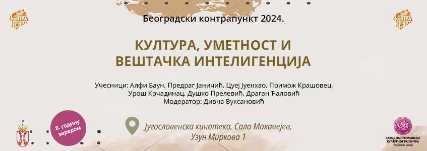 Beogradski kontrapunkt 2024, međunarodni skup organizovan od strane Ministarstva kulture Republike Srbije u saradnji sa Zavodom za proučavanje kulturnog razvitka, održan je u Jugoslovenskoj kinoteci u Beogradu.