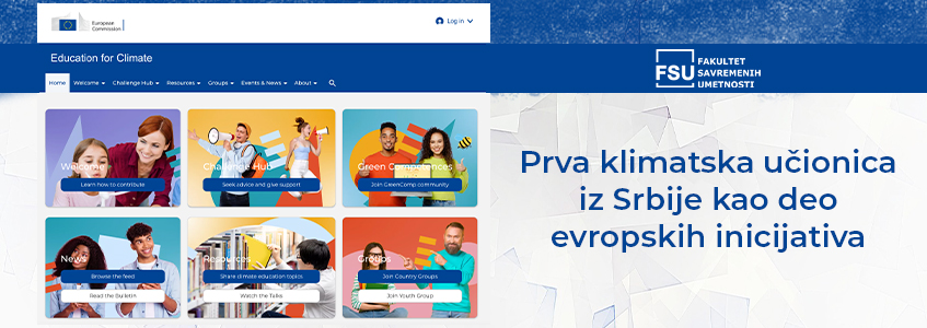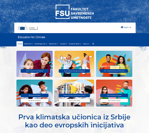 Fakultet savremenih umetnosti (FSU) se još jednom pokazao kao lider u obrazovanju i inovacijama. Zvanično je registrovao FSU: Klimatsku učionicu na platformi Evropske komisije: Edukacija za klimatsku koaliciju. Ovaj pionirski poduhvat još jednom potvrđuje svestranost rada i interesovanja profesora i studenata FSU, koji su privukli pažnju međunarodne javnosti.