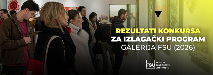 Shodno odluci Saveta Galerije FSU, a po okončanju otvorenog konkursa KONKURS ZA IZLAGAČKI PROGRAM – GALERIJA FSU za 2026. godinu, Galerija Fakulteta savremenih umetnosti (Svetozara Miletića 12, Beograd) objavljuje rezultate konkursa.