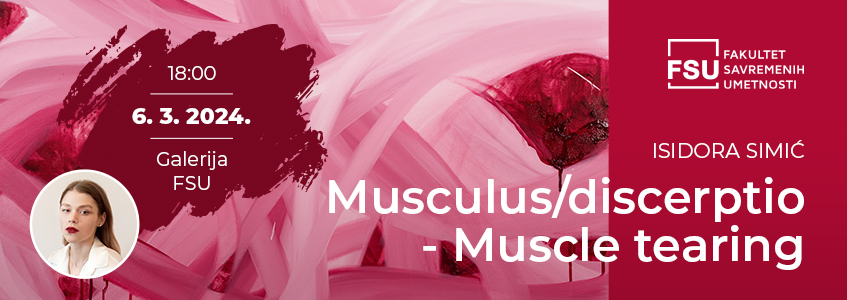 U prostorijama Galerije Fakulteta savremenih umetnosti otvara se izložba koja obećava jedinstveno umetničko iskustvo. „Musculus Discerptio / Muscle Tearing” je solo izložba umetnice Isidore Simić, koja svojim radovima preispituje ljudsko telo i emotivnu dubinu. Izložba će za posetioce biti dostupna od 6. do 18. marta, a svečano otvaranje je zakazano za 6. mart u 18 časova.