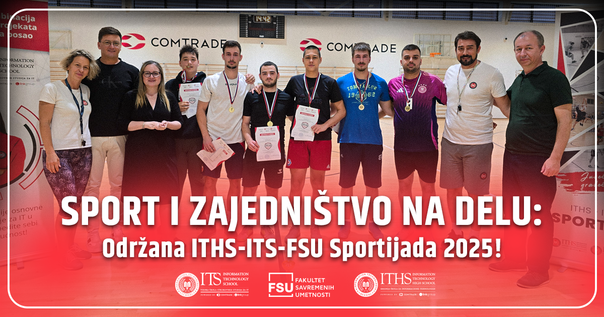 Na ovogodišnjoj ITS Sportijadi 2025, učenici i studenti ITHS-a,ITS-a, i Fakulteta savremenih umetnosti pokazali su pravi timski duh, fer plej i takmičarski žar u završnim turnirima u odbojci, malom fudbalu, basketu i stonom tenisu.