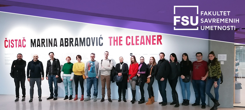 Studenti Departmana vizuelnih umetnosti Fakulteta savremenih umetnosti, u okviru redovne nastave na predmetima Teorija performansa i Likovna poetika, posetili su prošle nedelje izložbu „Čistač”, čiji je autor čuvena umetnica Marina Abramović.