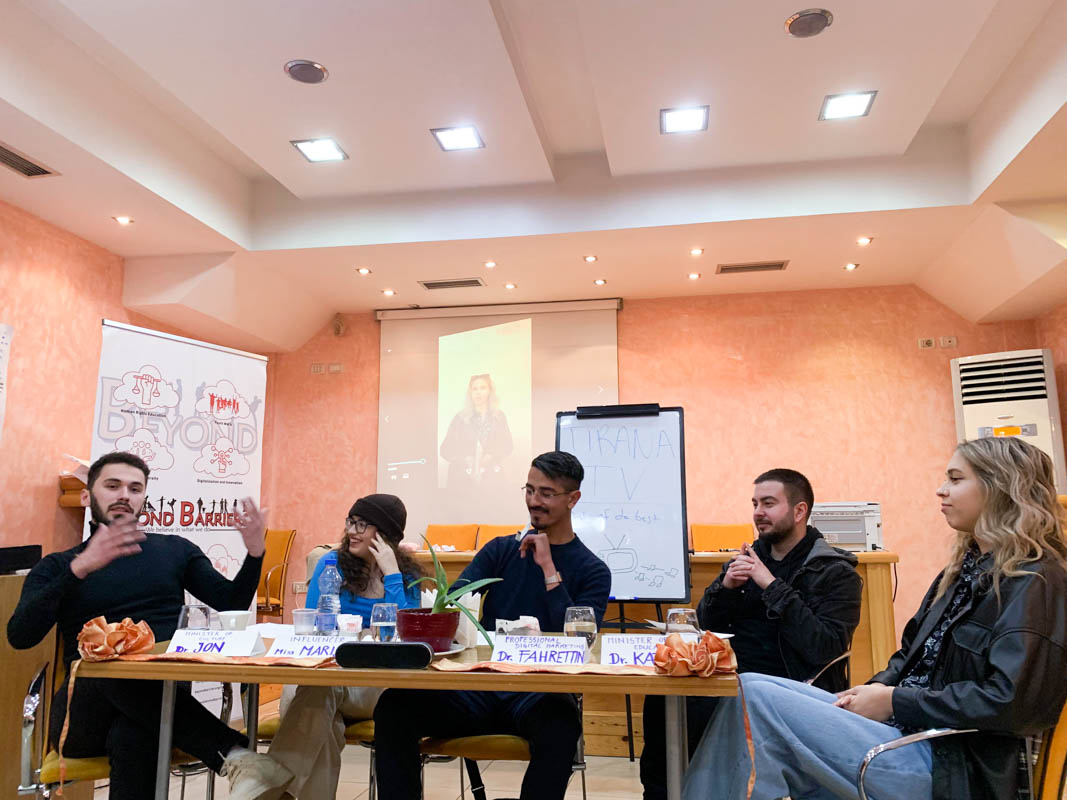 Ovaj skup organizovalo je udruženje „Beyond Barriers” iz Albanije, koje je sastavilo program najrazličitijih aktivnosti održanih od 13. do 19. marta. Glavne teme bile su digitalni otisak i stvaranje novih poslova tako da prate razvoj današnjeg visokotehnološkog društva. Naše studentkinje su prezentovale i učestvovale u panelima u vezi sa mnogobrojnim aktuelnim temama kao što su digitalni aktivizam, krađa i deljenje informacija, odgovorno ponašanje na internetu, nove profesije nastale razvojem interneta itd.