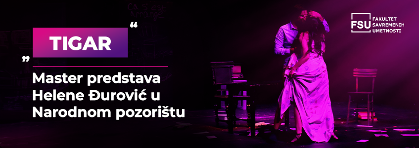 Na sceni Narodnog pozorišta, u okviru Scene „Raša Plaović“, premijerno je izvedena master predstava „Tigar“ u režiji Helene Đurović, studentkinje Fakulteta savremenih umetnosti, pod mentorstvom prof. emeritus Vide Ognjenović.