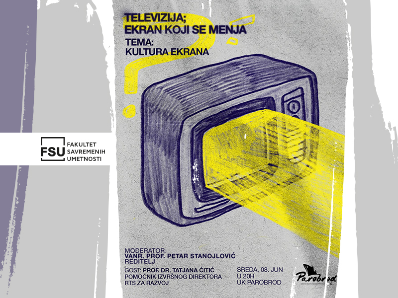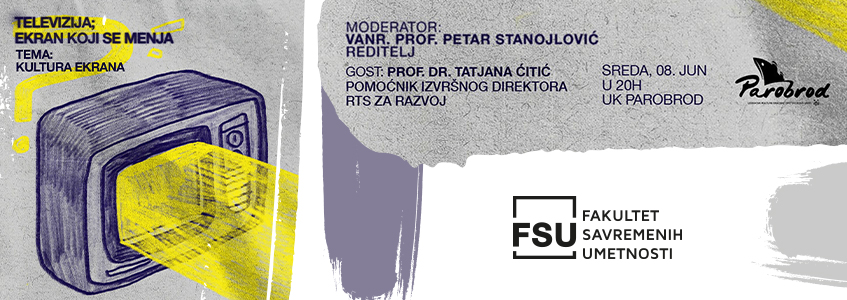 Petar Stanojlović, šef Departmana kreativnih komunikacija i vanredni profesor, održaće u sredu, 8. juna, u 20 časova, u UK „Parobrod” treće predavanje u ciklusu tribina „Televizija, ekran koji se menja”. Naziv trećeg predavanja je „Kultura ekrana”.
