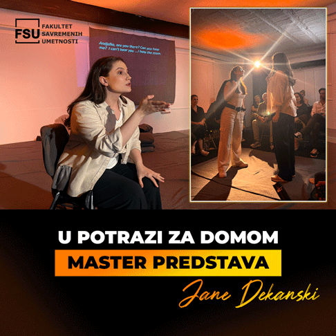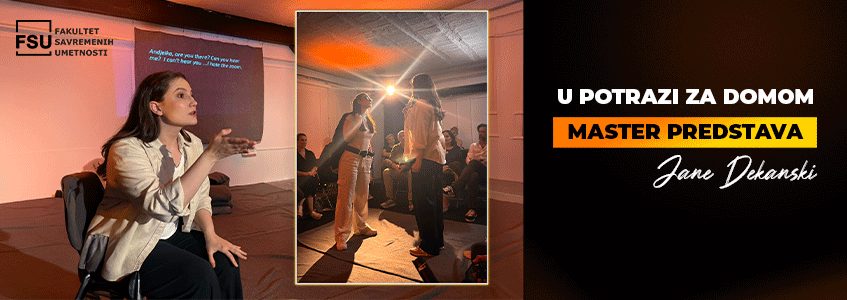 Predstava „U potrazi za domom“ izvedena je 4. juna kao master predstava studentkinje glume Jane Dekanski pod mentorstvom red. prof. Božidara Đurovića.